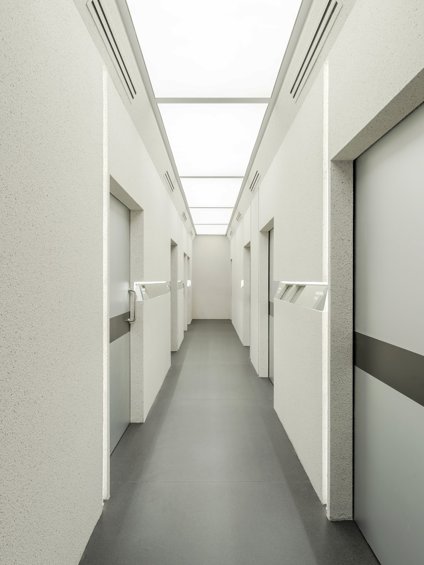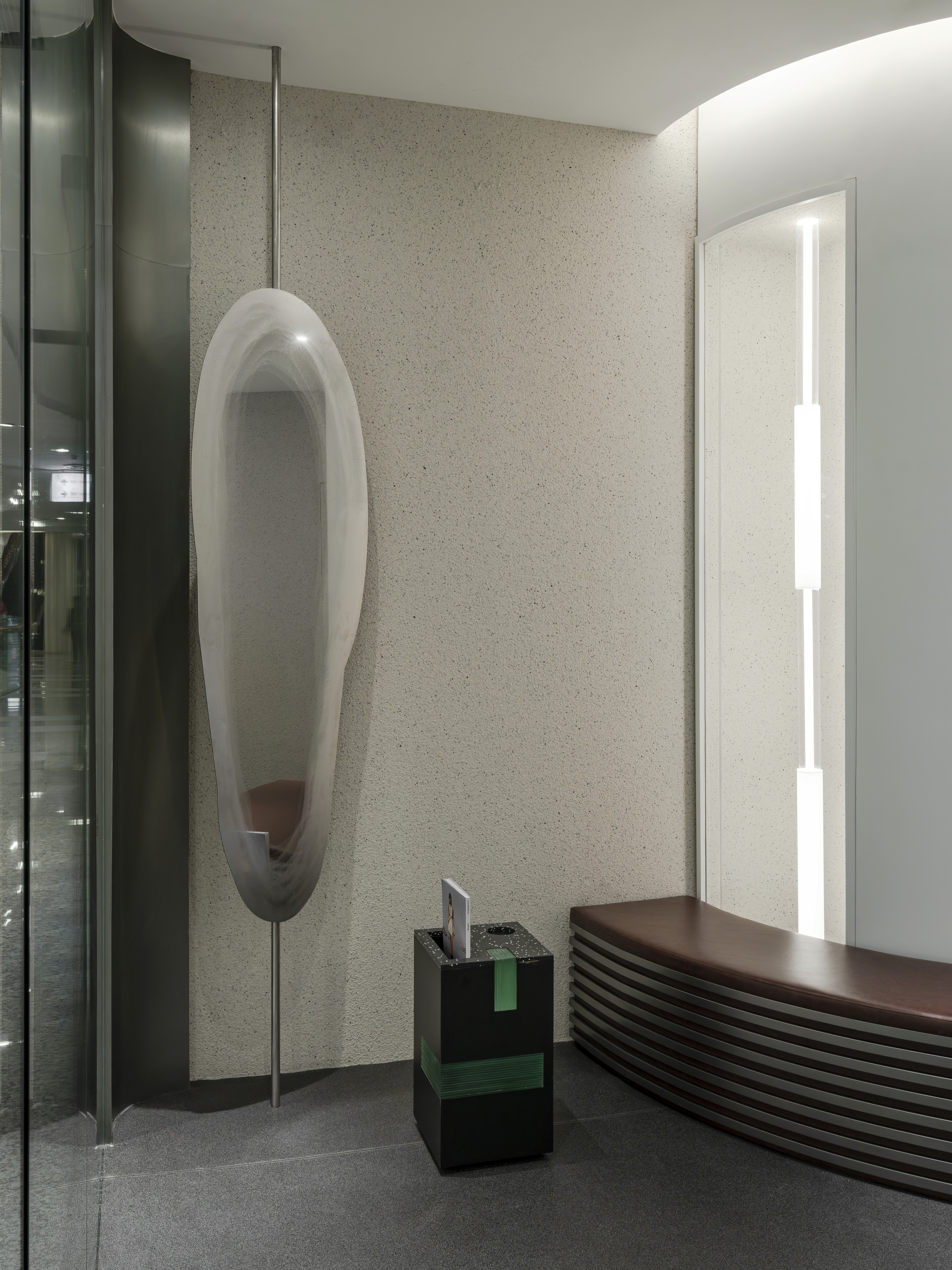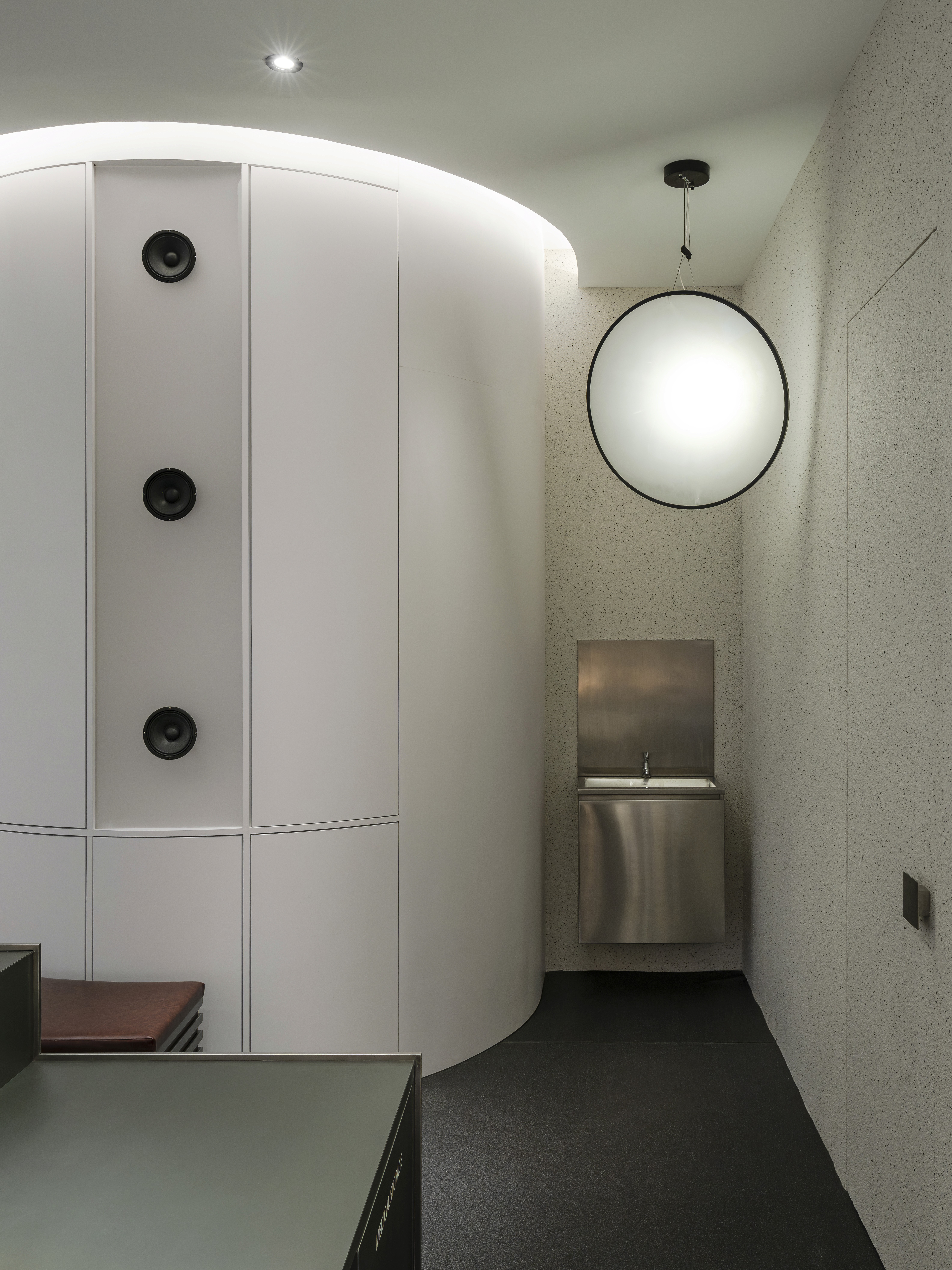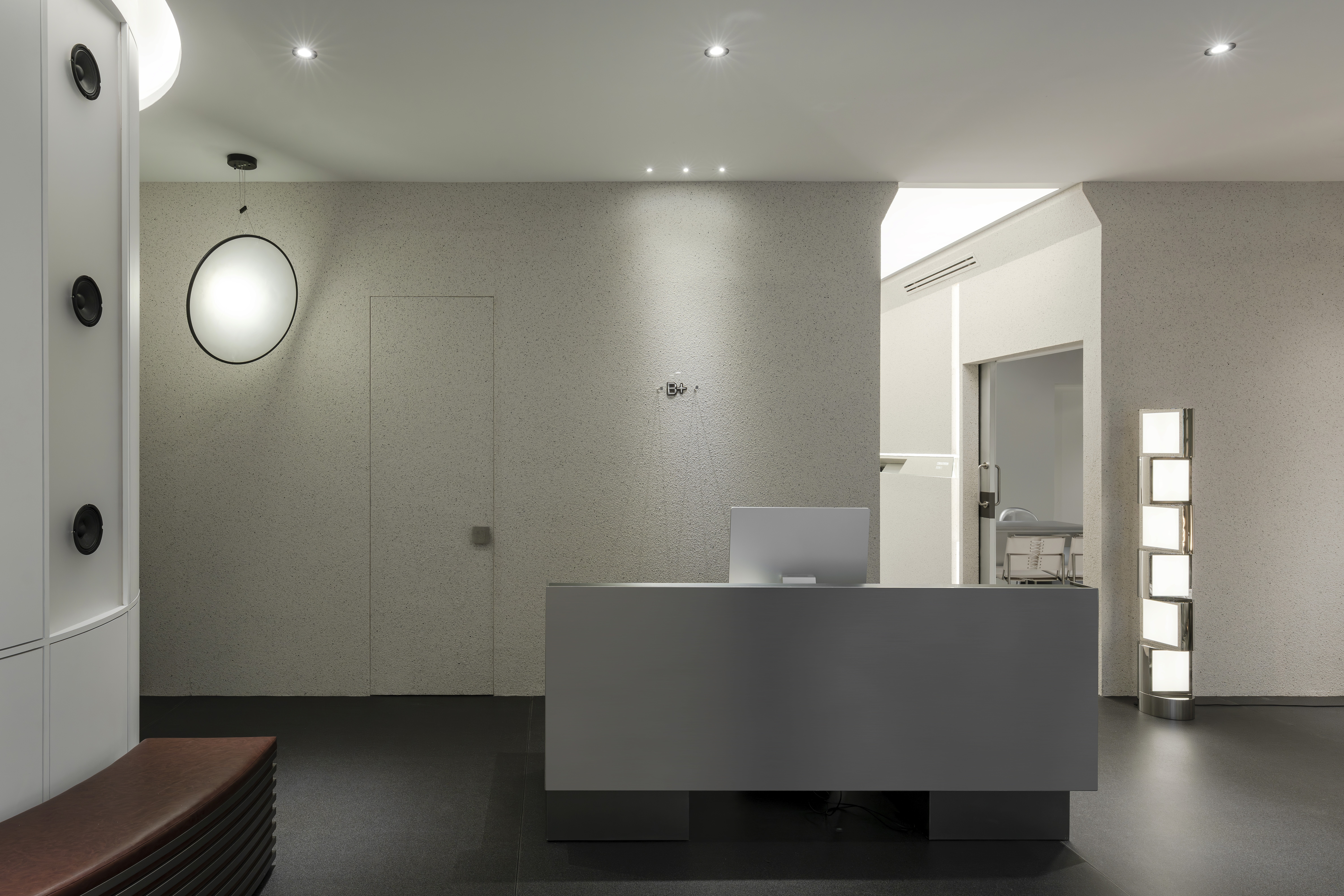 From the hand-sanded stainless steel reception and waiting area, complete with built-in speakers, to the custom lighting elements woven throughout the space, every detail was designed to evoke clarity, innovation, and sophistication. Even the mirror-lined walkway becomes part of the journey, guiding visitors with lights.