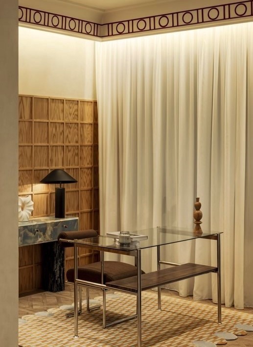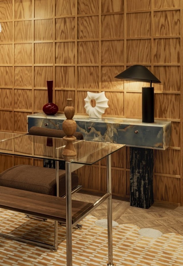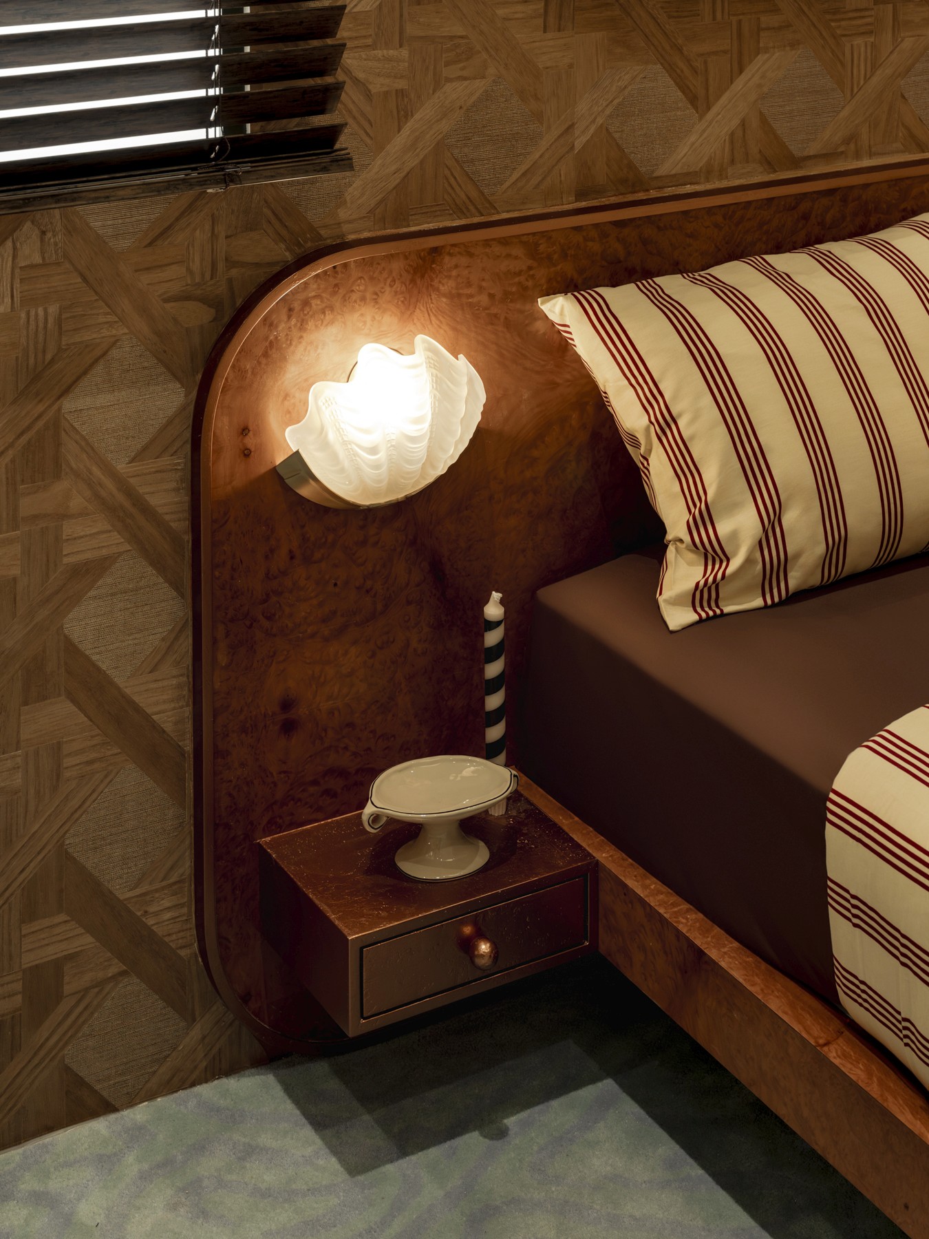For moments of quiet contemplation, the study area beckons with a wooden back panel that exudes a sense of tranquility and sophistication. Here, amidst the embrace of rich wood tones, one can retreat into a world of comfort and luxury.