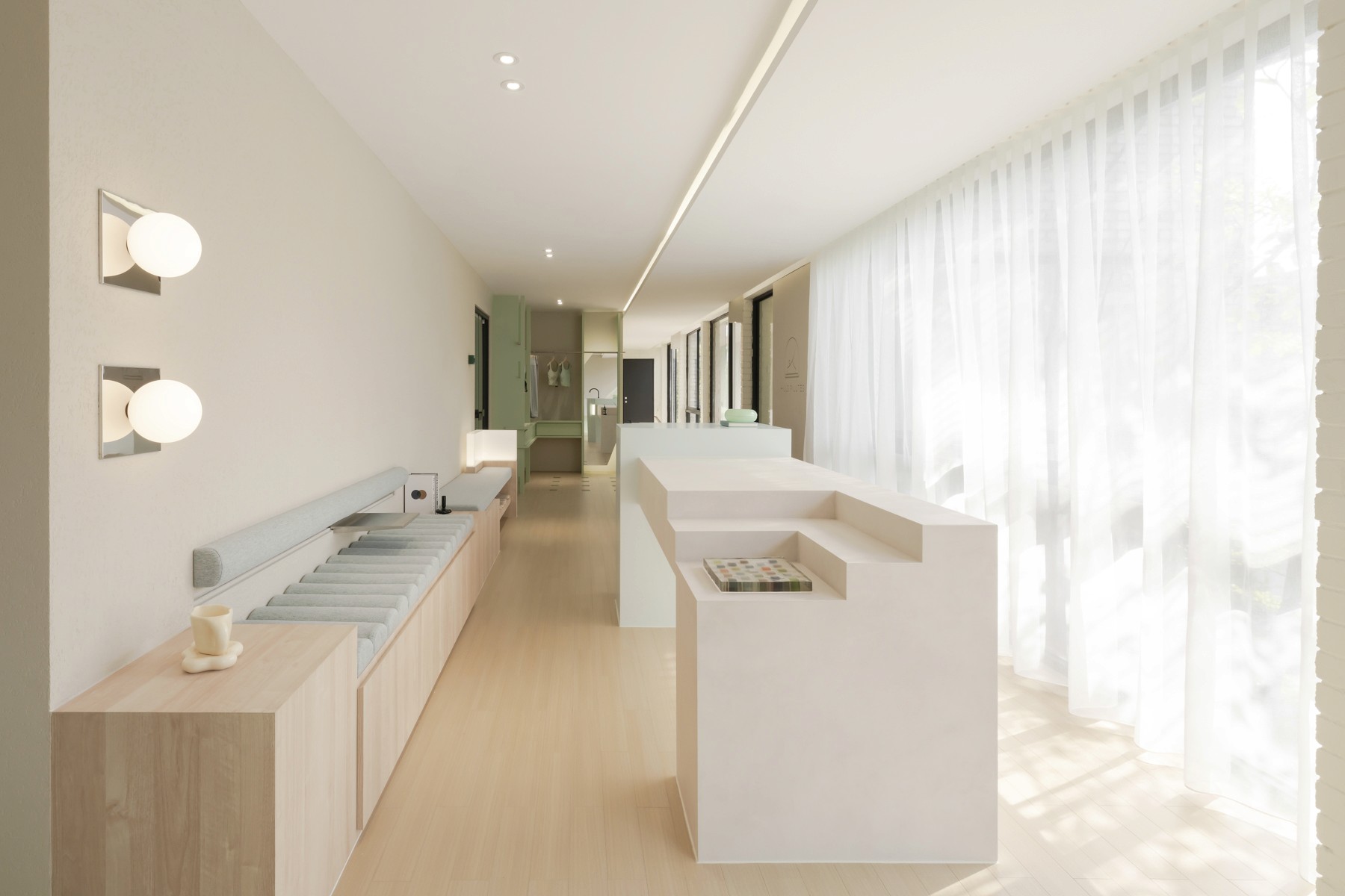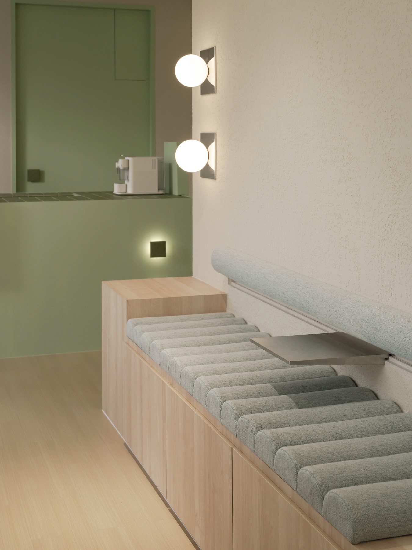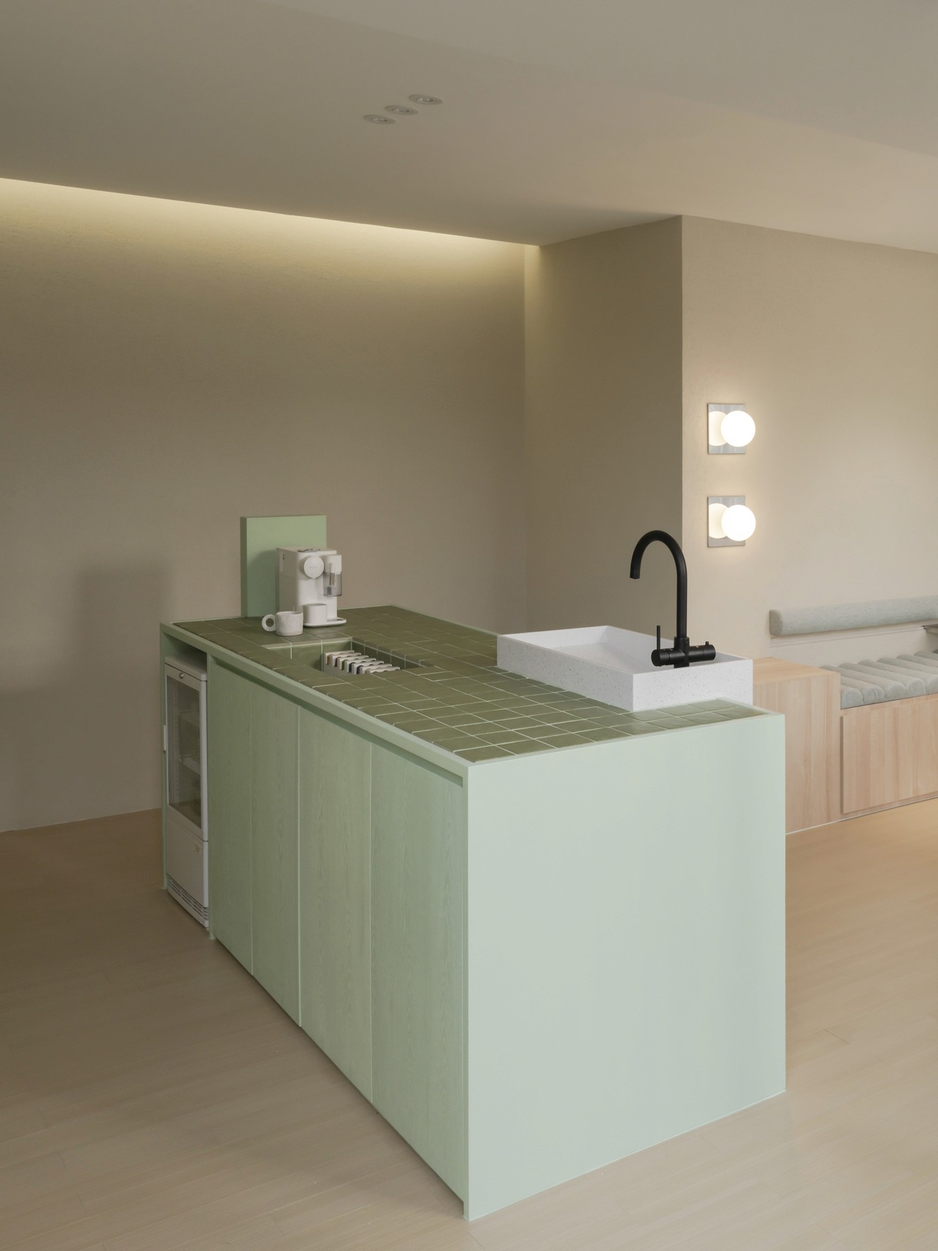 In the waiting area, the island pantry is an oasis of serenity where you can refresh and recharge before your session. Indulge in nourishing treats and beverages, enhancing your journey toward holistic well-being.