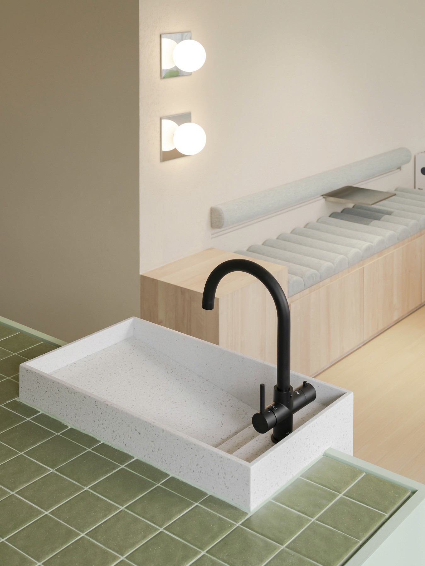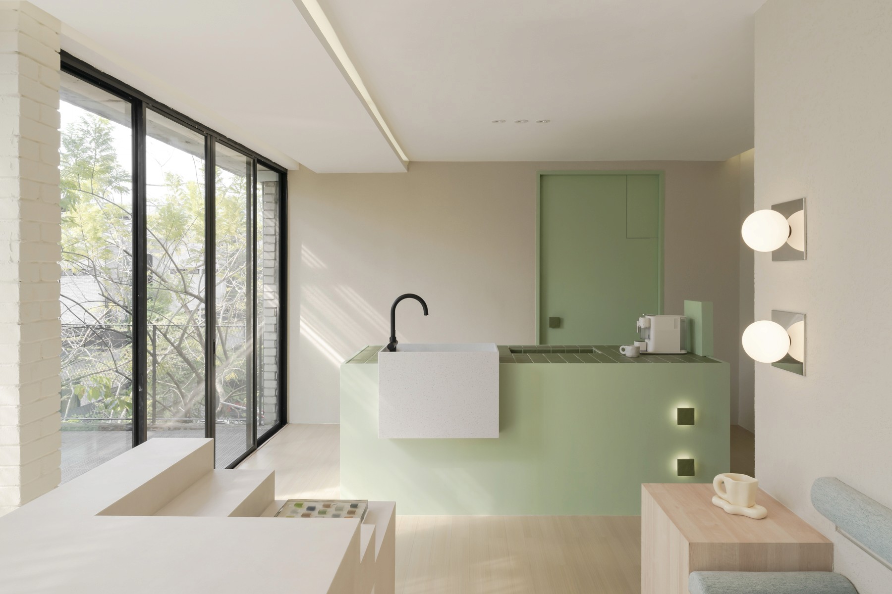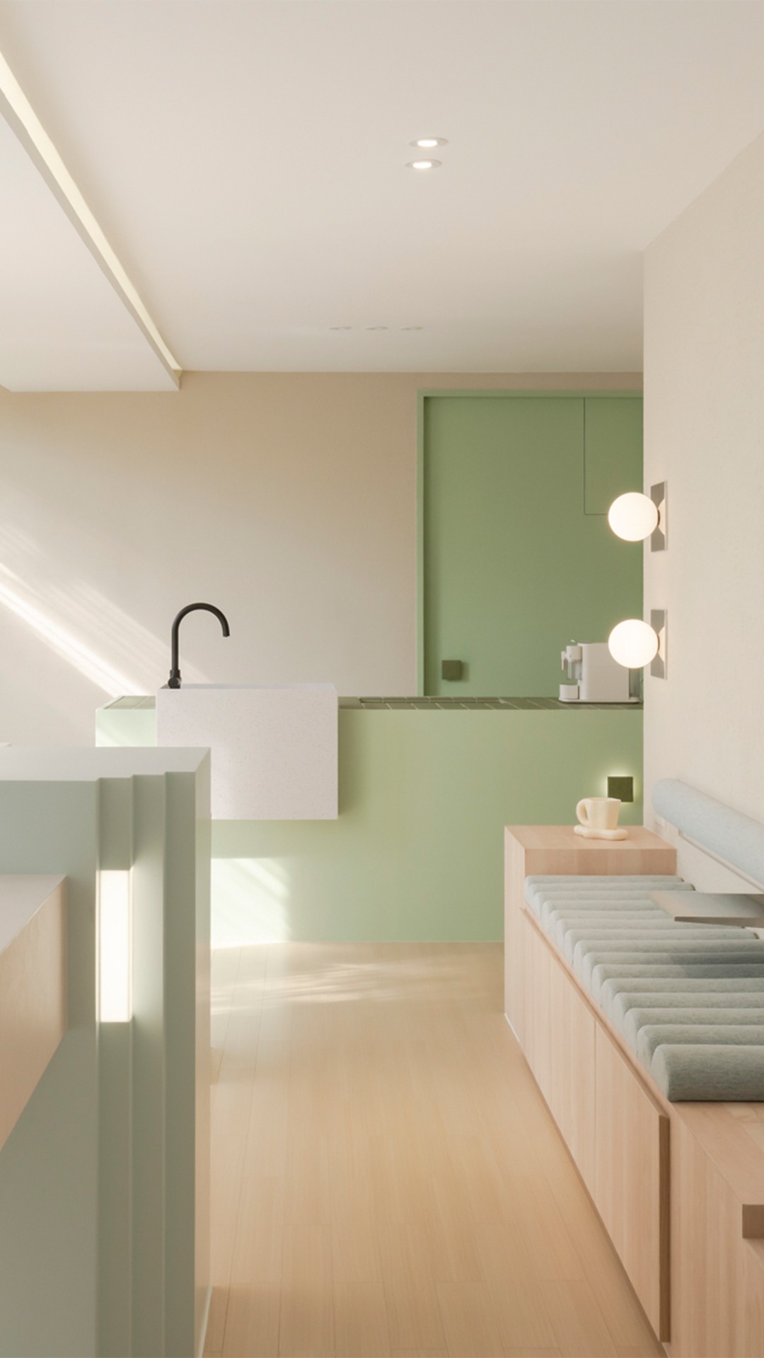 In the waiting area, the island pantry is an oasis of serenity where you can refresh and recharge before your session. Indulge in nourishing treats and beverages, enhancing your journey toward holistic well-being.