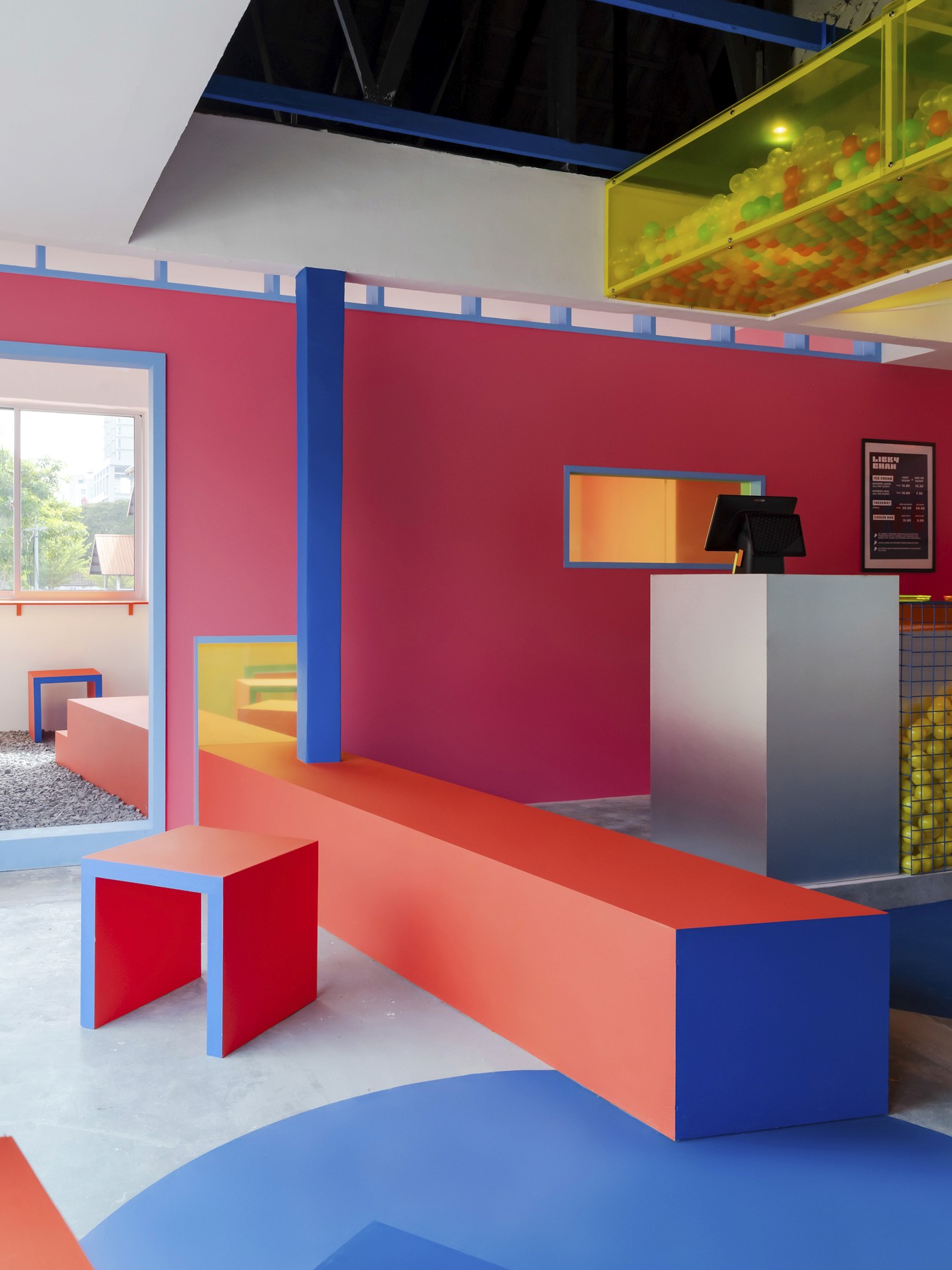 Nestled within the vibrant pulse of SS15's bustling corner, our ice cream bar beckons with an irresistible allure that commands attention from passersby. Bold and unapologetically vibrant, our space ignites the senses with an explosion of pop colors and whimsical shapes.